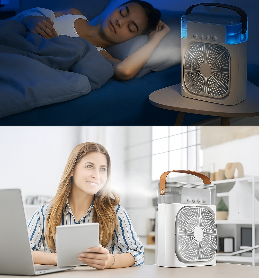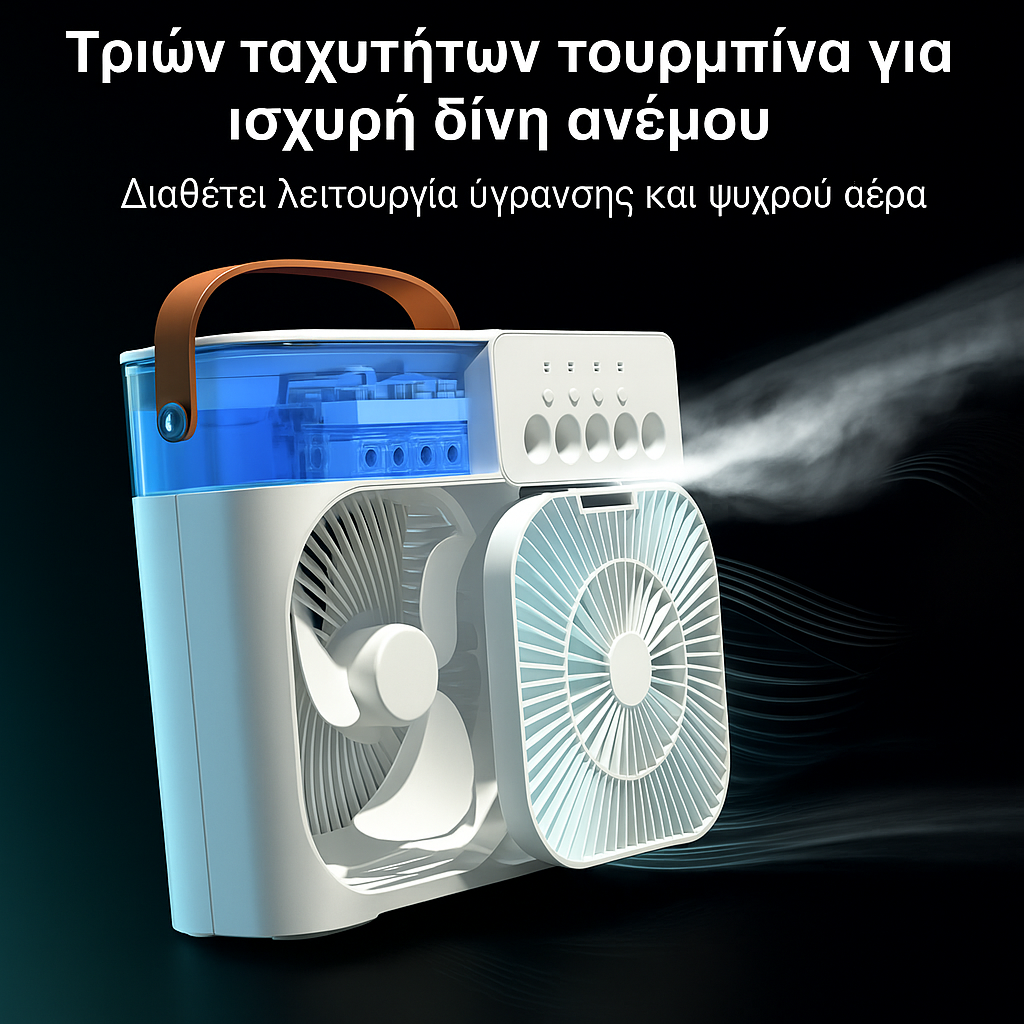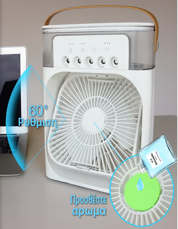 Το προσωπικό κλιματιστικό, που θα σας προσφέρει ψυχρό αέρα, χωρίς να αυξήσει τους λογαριασμούς ρεύματος. Έχει 3 λειτουργίες ταχύτητας, λειτουργία ύγρανσης. ψεκασμού νέφους, χρονοδιακόπτη για αυτόματη απενεργοποίηση και 7 διαφορετικους φωτισμούς για ευχάριστο κλιμά στο σκοτάδι